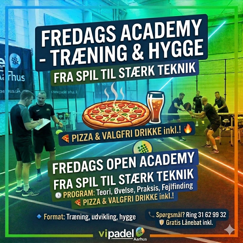 Pris: 120,- pr. person – inkluderer 2 timers padel, bolde og et glas bobler. 💳