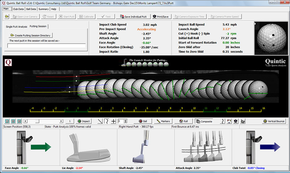 Puttningscoach Helge Hernelind ger en tekniskt instruktion till setup puttingsimulatorn Quintic för träning på egen hand. Seminariet hålls i grupp och introducerar till datorinställningar, utrustning och avläsning av data.