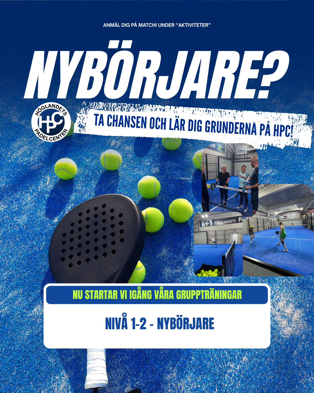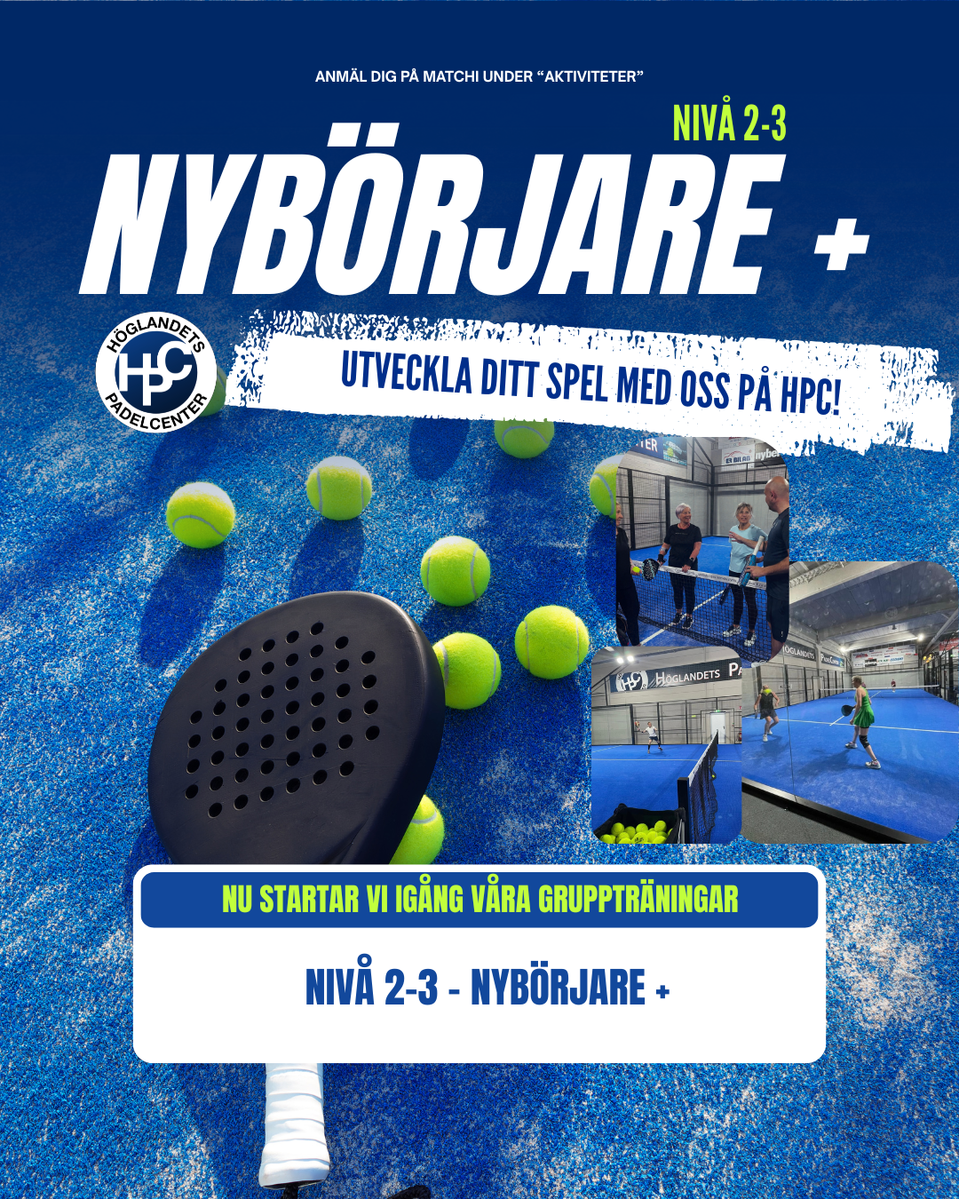 Level: 2 - 3Vill du ta ytterligare steg med teknik och taktik? Kanske förstå bakglaset bättre? Då är detta ett perfekt tillfälle att testa på denna lektion med vår PT Sebastian för Nivå 2-3 (Låg / Medel-låg nivå). Vi anpassar lektion och tempo efter gruppen. Upp till 4 spelare.