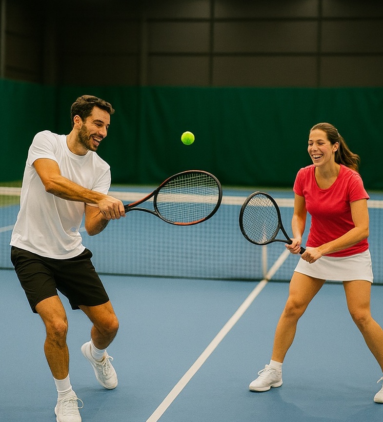 Välkommen till en rolig tennisstund där gemenskapen är i fokus!