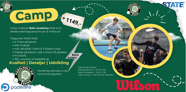 Niveau (2.0 - 2.5) Padelhall Skive tilbyder en Balic Academy Camp i samarbejde med Wilson, State og Padellife.dk
