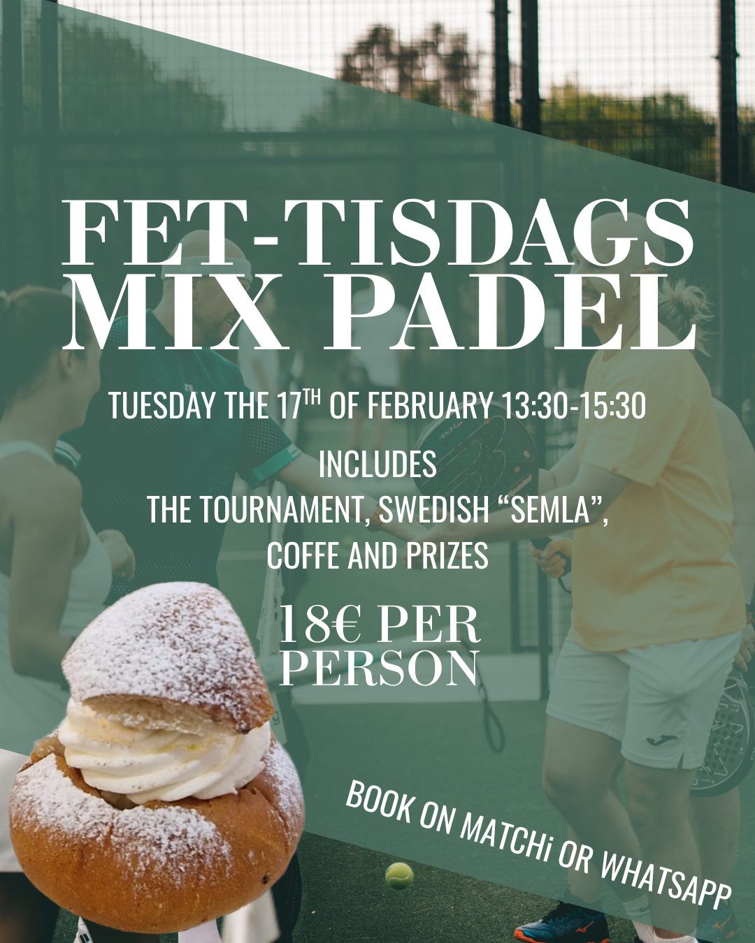 Hi and welcome to our Fet-tisdags mix tournament. The tournament is a Winners court where all players regardless of their level are welcome. Which means that the winning team of the game moves up one court and the loosing team moves down one court and you play with the same partner all the time. You also sign up as a team so the price is for two persons.